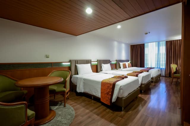 Enjoy space & comfort, with a place for business work and relaxation. Rooms offer a spacious working desk with FREE Wi-Fi internet. It is geared toward your business success.Featuring a Queen Bed, LCD with smart TV and cable channels, free Wi-Fi, in-room safe, & bathroom with shower & bathtub and washlet. Nice view and located on the corner each floor.