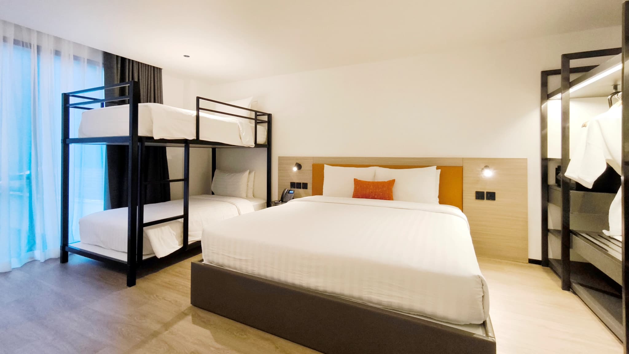 Experience the perfect family getaway in our spacious Family Suite with Bunk Bed, featuring 50 m² of modern comfort, city views, and thoughtful amenities for everyone to enjoy.