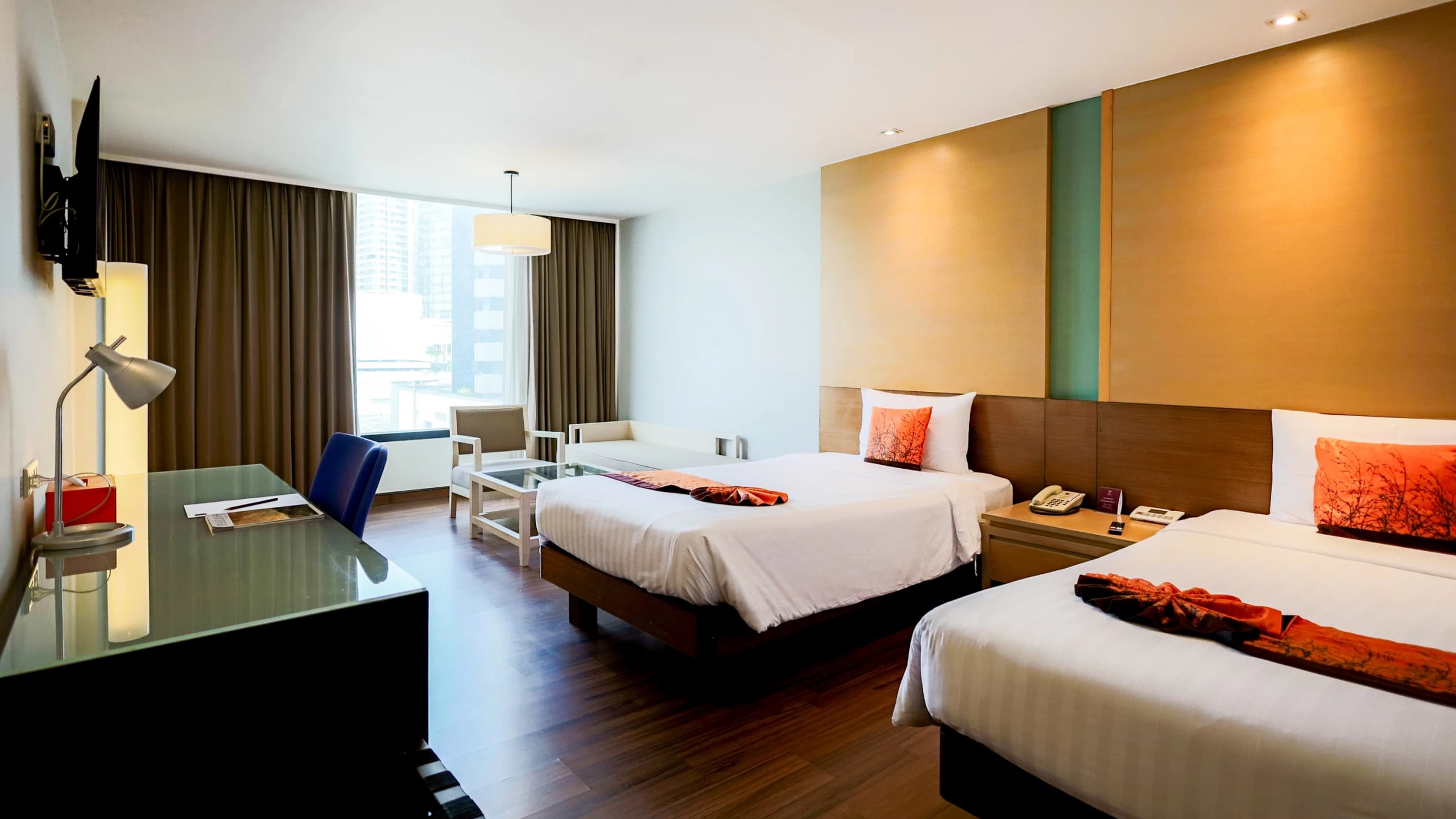 Enjoy space & comfort, with a place for business work and relaxation. Rooms offer a spacious working desk with FREE Wi-Fi internet. It is geared toward your business success.Featuring a Queen Bed, LCD with smart TV and cable channels, free Wi-Fi, in-room safe, & bathroom with shower & bathtub and washlet. Nice view and located on the corner each floor.